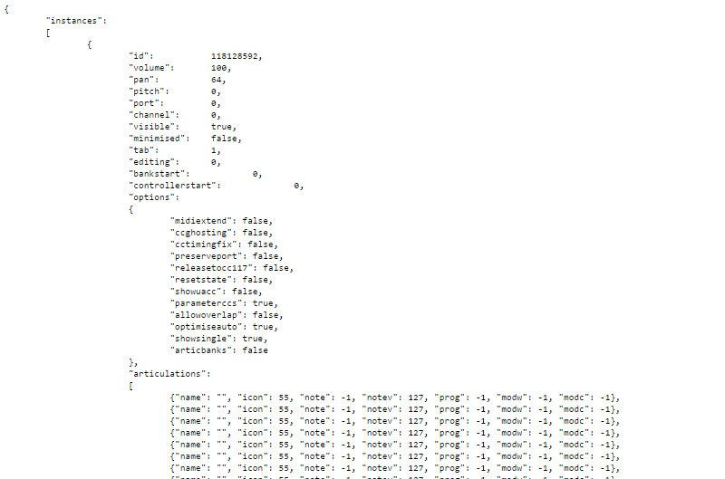 If you have Articulate running and turn on the API and open the URL provided above in your browser, you'll be greeted with a chunk of JSON. Congratulations - this is a list of all instances of Articulate that your FL Studio is hosting: