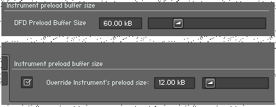 When an instrument is utilising the Direct-from-disk (DFD) streaming, Kontakt will load a tiny portion of each sample into memory. This pre-load buffer gives Kontakt a little bit of data in RAM that it can play while it's streaming in data from the disk. Kontakt allows you to configure how big this buffer is on an instrument or global level so that users can optimise for SSDs or other fast data storage.