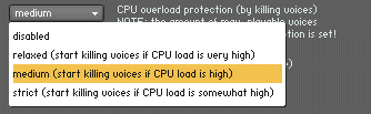 With the power of modern-day CPUs and the trend moving towards offline-rendering, I'd recommend setting these to disabled. Unless you're using an instrument with unoptimised code or an excess of groups and zones you shouldn't experience much in terms of CPU overheads. Simply click the Options button on the Kontakt toolbar, select the Engine page and look for the 'CPU Overhead protection' option.